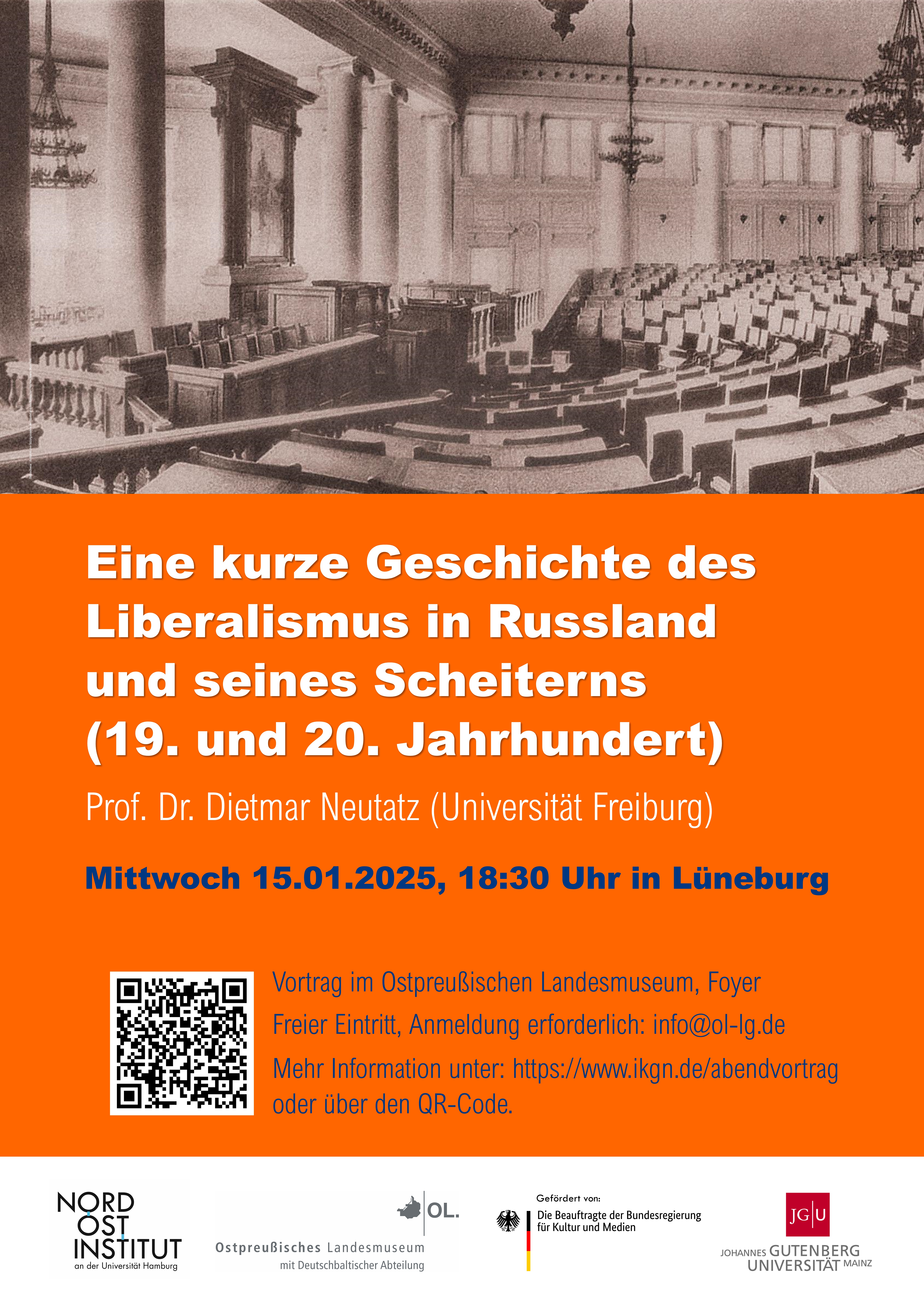 Prof. Dr. Dietmar Neutatz von der Universität Freiburg, ausgewiesener Kenner der Geschichte Russlands, erzählt die Geschichte verpasster Chancen in der russischen Geschichte und erläutert die Gründe für das Scheitern des Liberalismus in Russland bis in die Gegenwart.